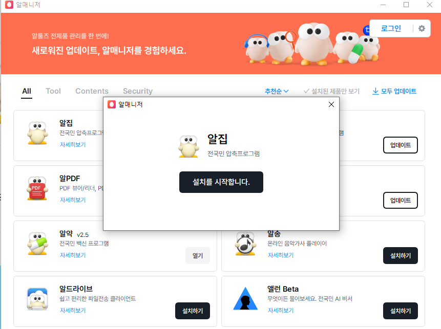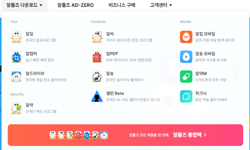 이런식으로 나온다 알집을 클릭 후 설치 하면 된다.